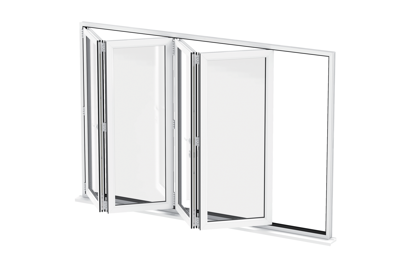 - Là loại cửa đi nhiều cánh được mở bằng cách trượt và xếp trên ray, ngoài ra còn có các cánh có thể mở quay.